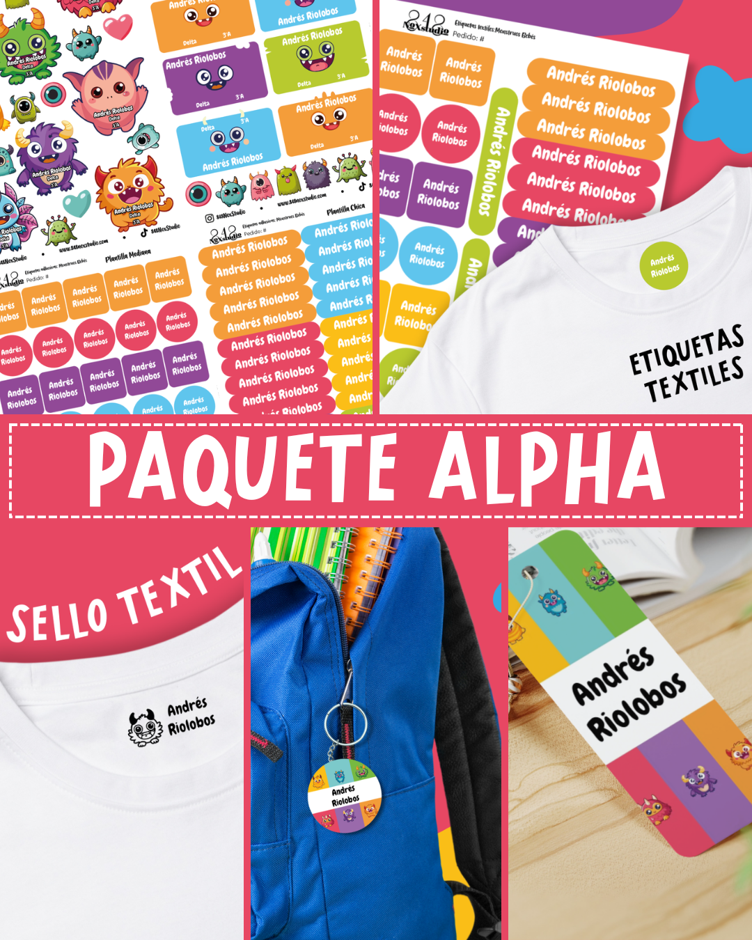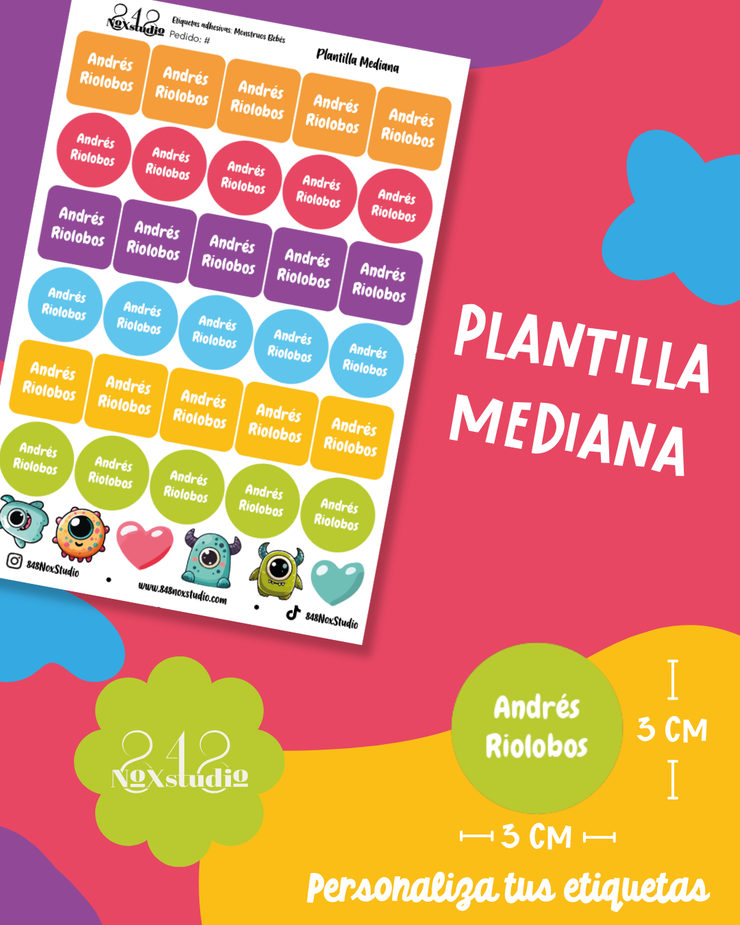 Incluye: 3 plantillas textiles con 90 etiquetas de diferentes tamaños y colores