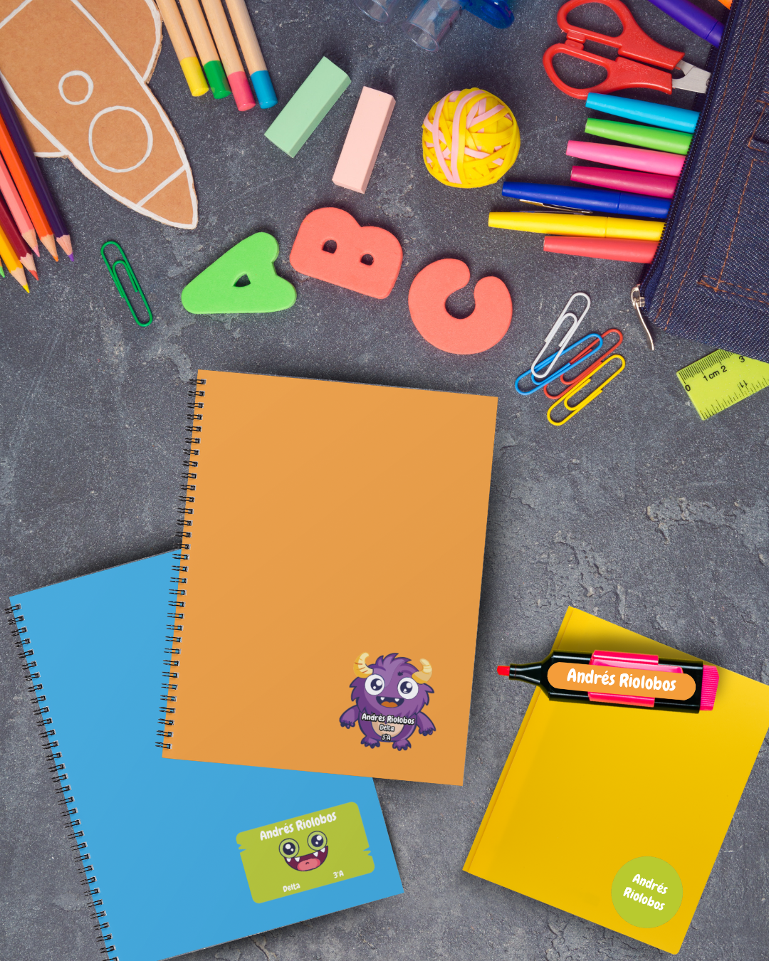 Con nuestras etiquetas siempre podrás saber cuales son tus cuadernos, lápices, estuches, juguetes o cualquier superficie rígida que desees!