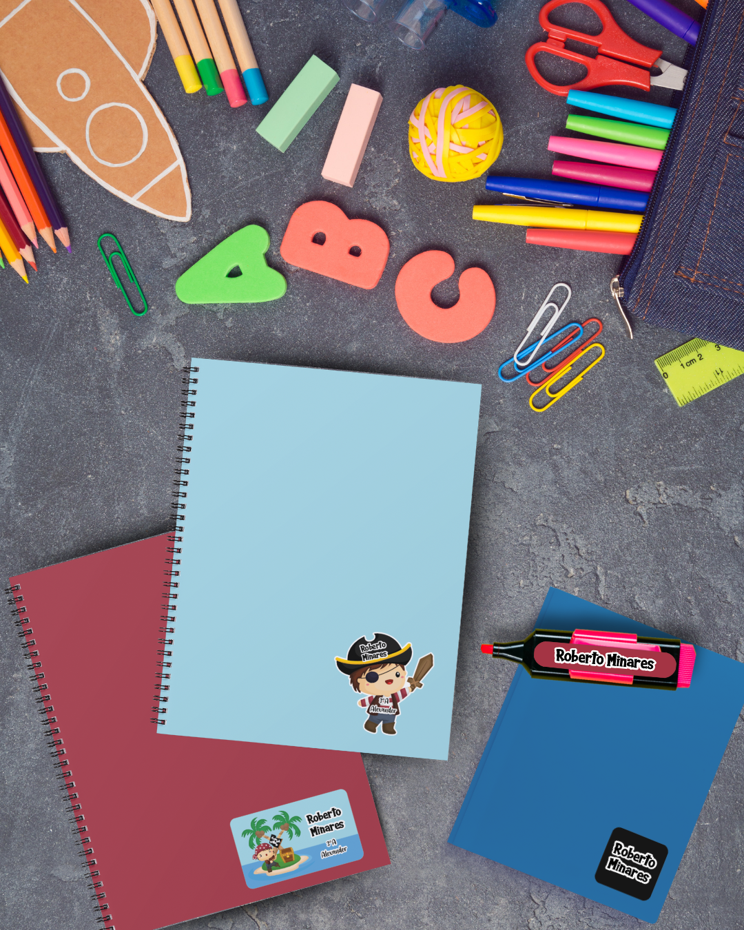 Con nuestras etiquetas siempre podrás saber cuales son tus cuadernos, lápices, estuches, juguetes o cualquier superficie rígida que desees!