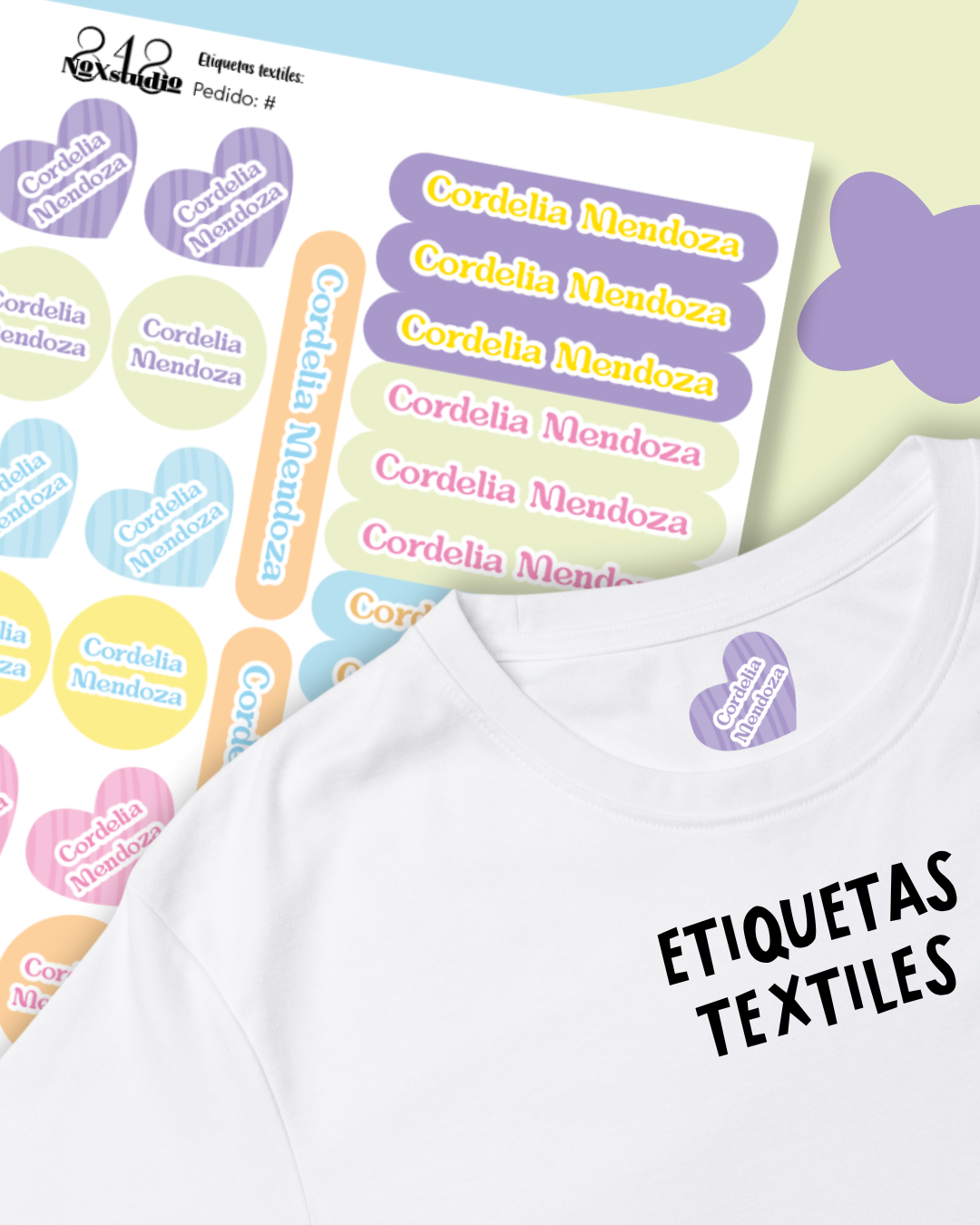 Nuestras etiquetas deben aplicarse con calor sobre la tela para que se adhiera de forma correcta, una vez hecho esto están listas para usarse y lavarse.